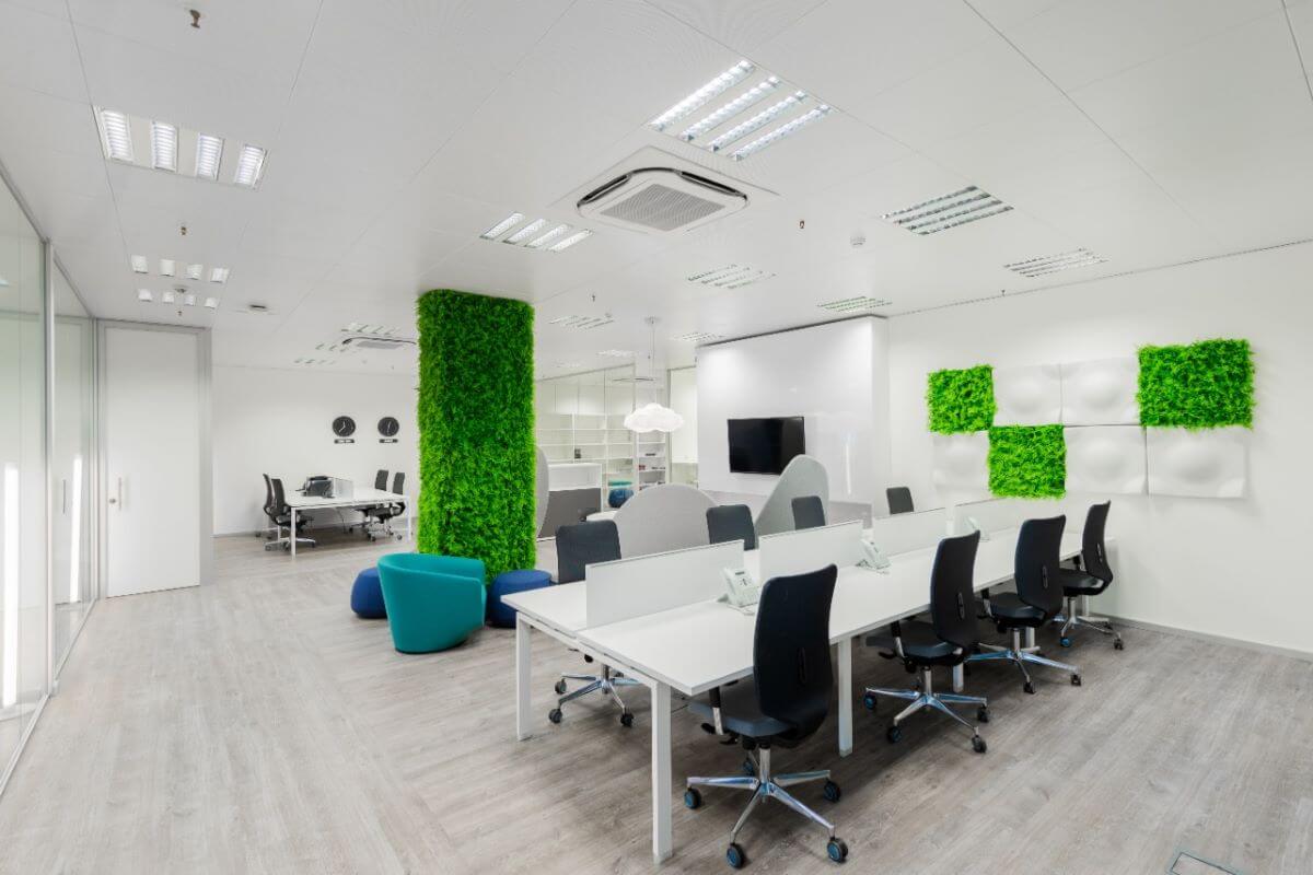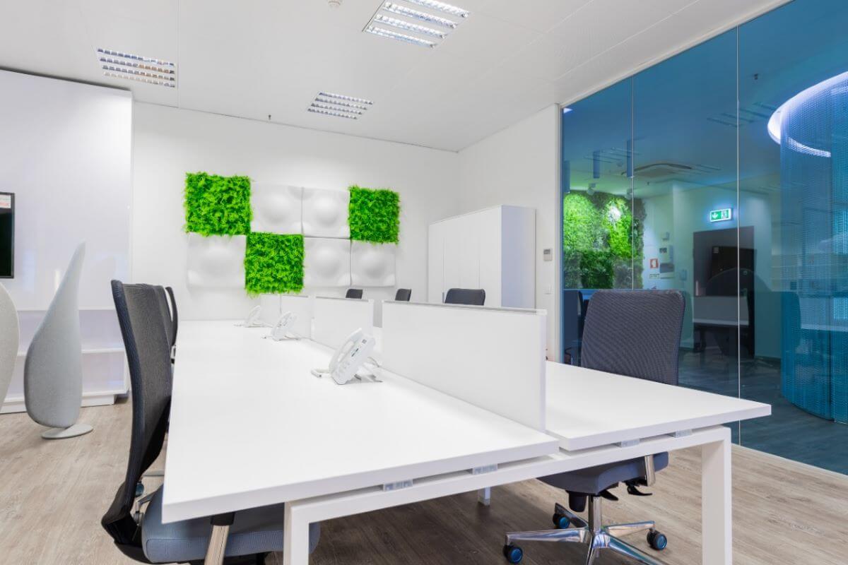 In the choice of materials, a palette of white, blue, and green stands out, conveying a sense of calm and tranquility. In the end, we have a workspace that seamlessly integrates functionality and aesthetics, creating a harmonious and inspiring atmosphere.
