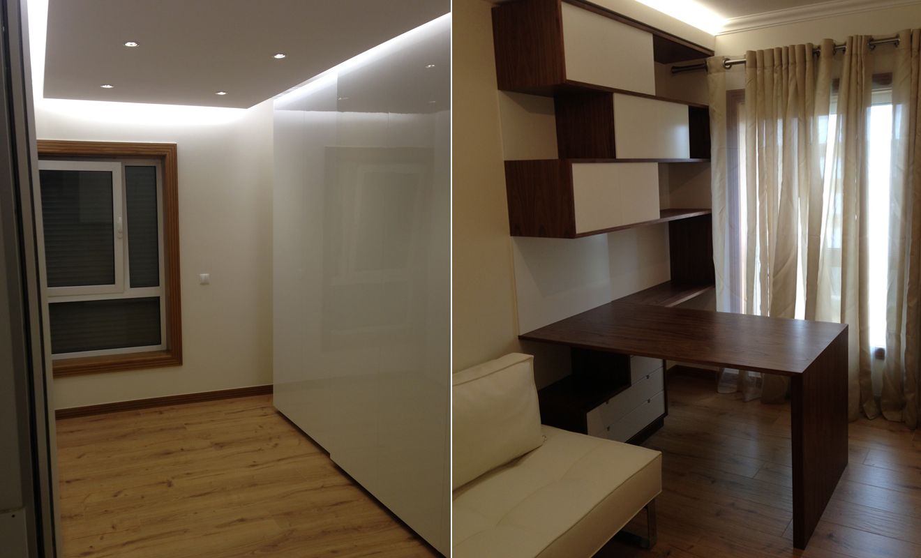 Interior remodeling project, including material selection, for a four-bedroom apartment located in Queijas, Oeiras.