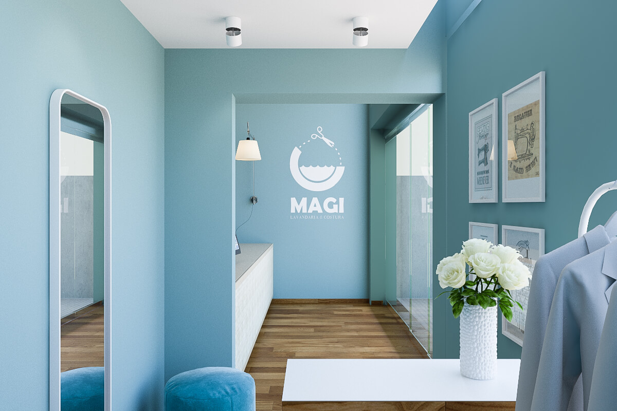 Inserted into one of the central avenues of Luanda, Magi Laundry & Tailoring stands out for the simplicity of its lines and uncluttered, immaculate environment. The double-height space projects onto the reception area an installation of hanging racks on the ceiling, creating a play of lights and dynamic reflections.
